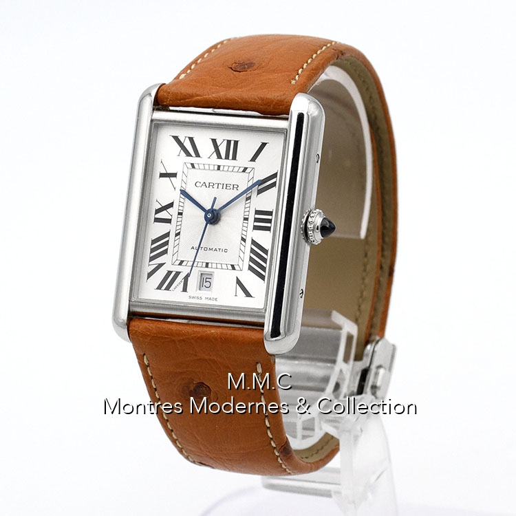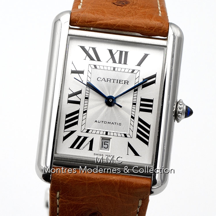 31mm en acier, cadran argenté avec chiffres romains, verre saphir, fond vissé, étanche à 30m
