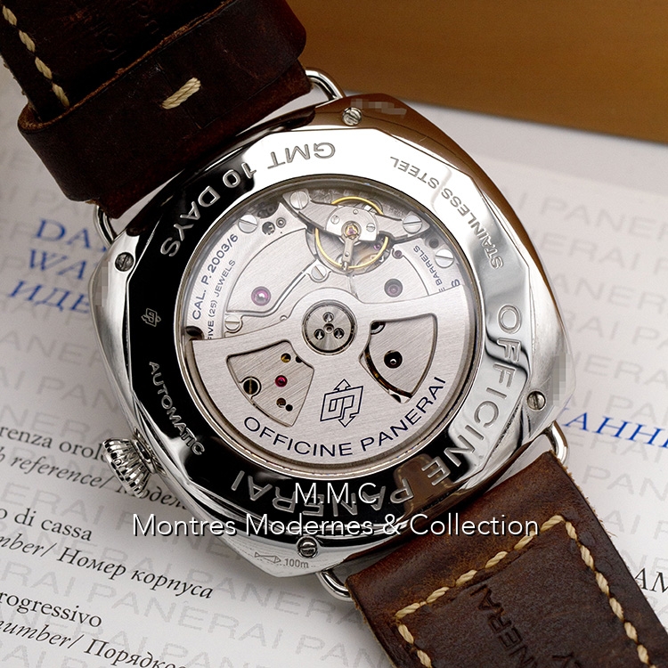 47mm in steel, black dial, luminescent index and hands, sapphire glass, screwed backcase transparent, screwed crown, water resistant to 100m