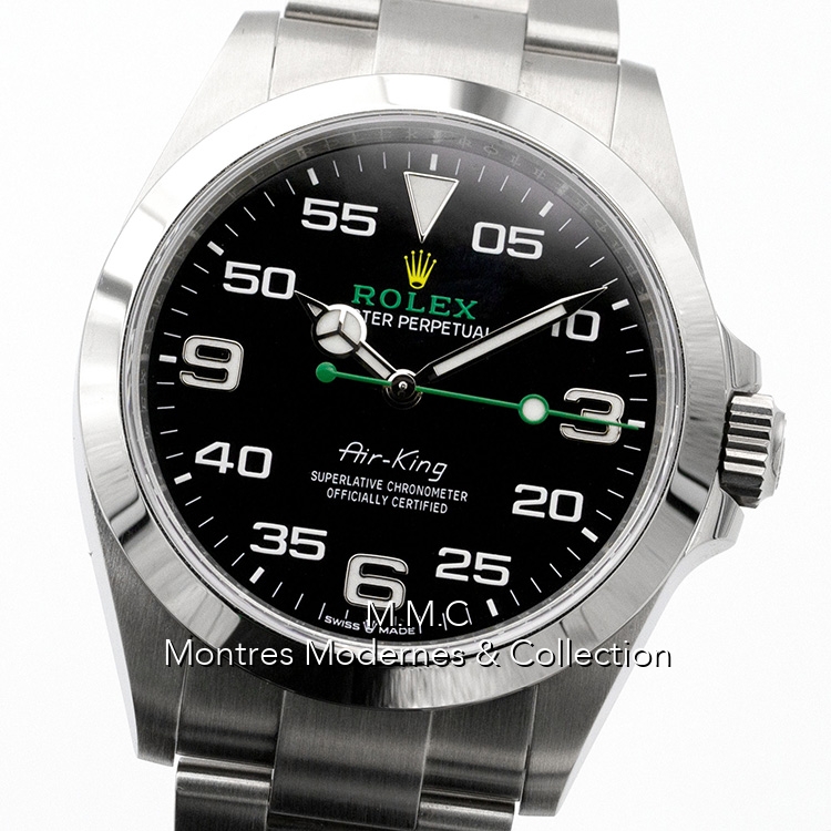 40mm in steel, black dialwith luminescent arabic numbers, sapphire glass, screwed backcase, screwed crown, water resistant to 100m