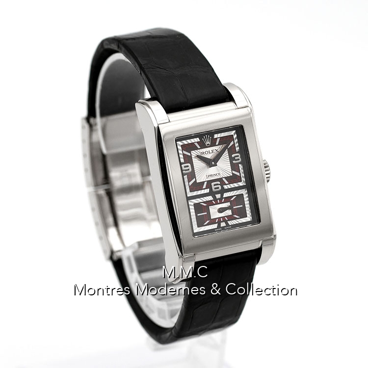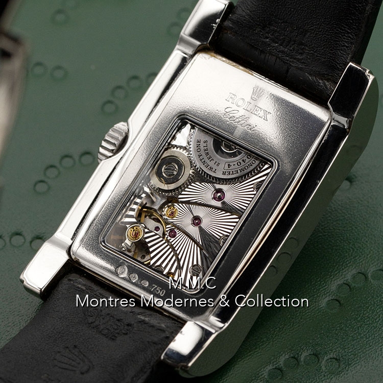 47x28mm en or gris, verre saphir, fond clipé transparent