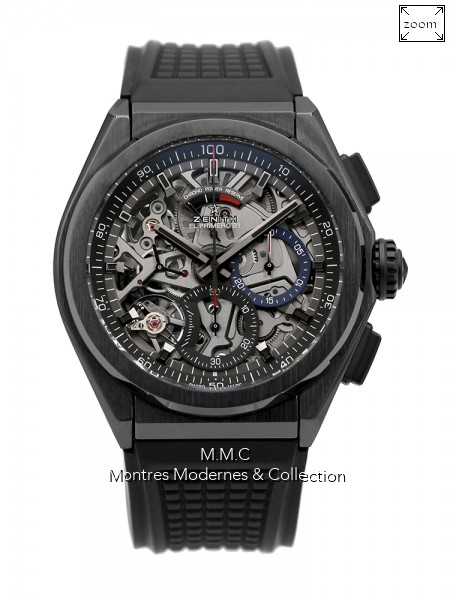 44mm en céramique, cadran squelette avec index bâtons, verre saphir, fond vissé transparent, étanche à 100m |