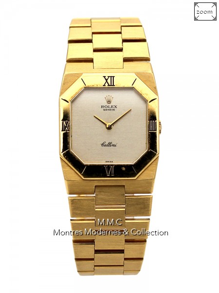 27mm en or jaune, cadran argenté, verre plexiglas, fond clipé |