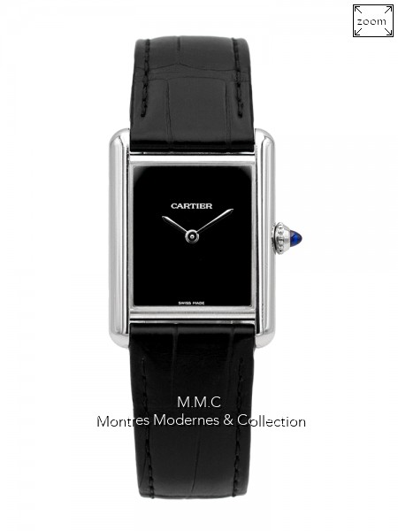 25mm en acier, cadran noir, verre saphir, fond vissé, couronne ornée d'un cabochon saphir |