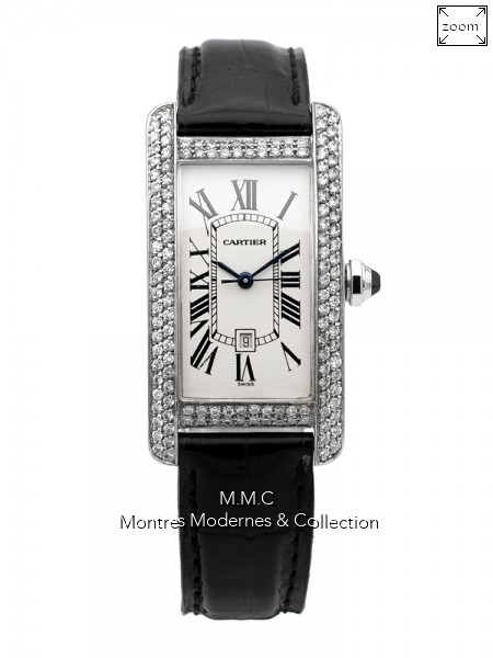 22,6mm en or gris serti de diamants, cadran argenté avec chiffres romains, verre saphir, fond vissé, couronne ornée d'un cabochon diamant, étanche à 30m |