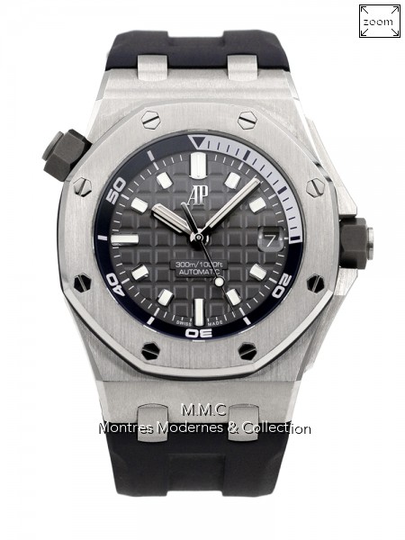 42mm en acier, cadran gris, index et aiguilles luminescents, verre saphir, fond vissé transparent, couronne vissée, étanche à 300m |