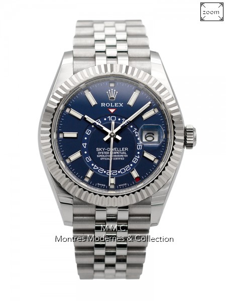42mm en acier, lunette en or gris, cadran bleu avec index bâtons luminescents, verre saphir, fond vissé, couronne vissée, étanche à 100m |