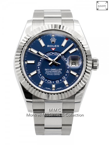 42mm in steel, bezel in white gold , blue dialwith luminescent sticks index, sapphire glass, screwed backcase, screwed crown, water resistant to 100m |