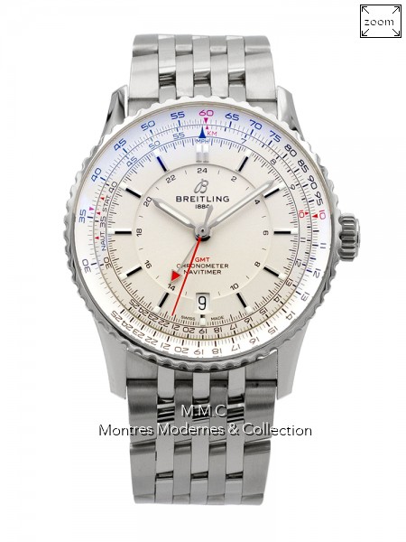 41mm en acier, lunette tournante bidirectionnelle, cadran argenté avec index bâtons, verre saphir, fond vissé, étanche à 30m |