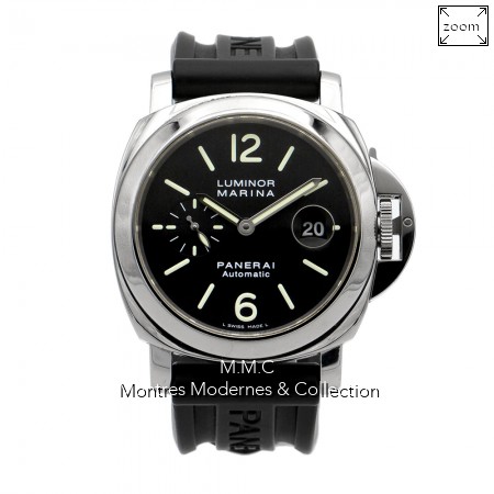 44mm en acier, cadran noir, index et aiguilles luminescents, verre saphir, fond vissé, étanche à 300m |