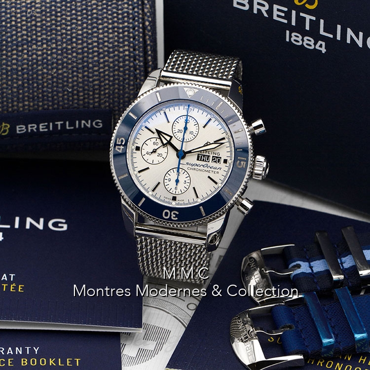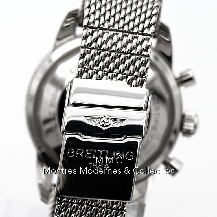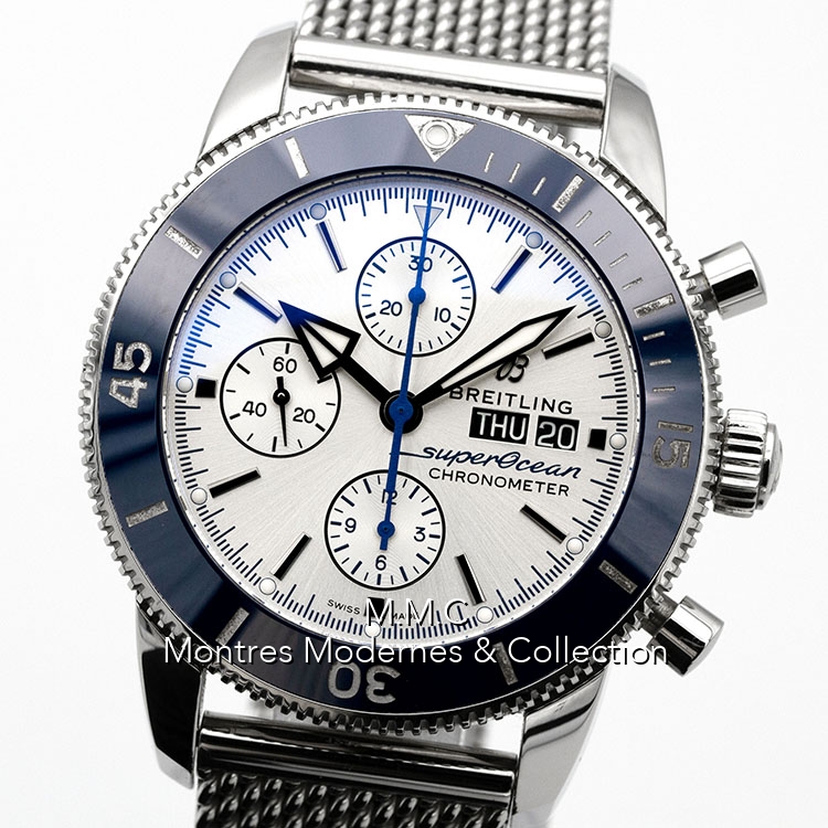 44mm en acier, lunette tournante unidirectionnelle, cadran argenté, verre saphir, fond vissé, couronne vissée, étanche à 200m