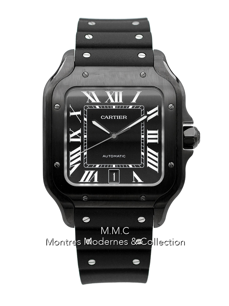 39mm in DLC, bezel fixed in stell, black dialwith luminescent roman numbers, sapphire glass, screwed backcase, water resistant to 100m