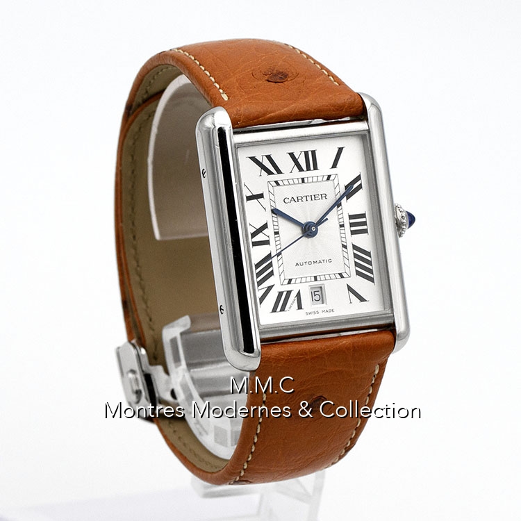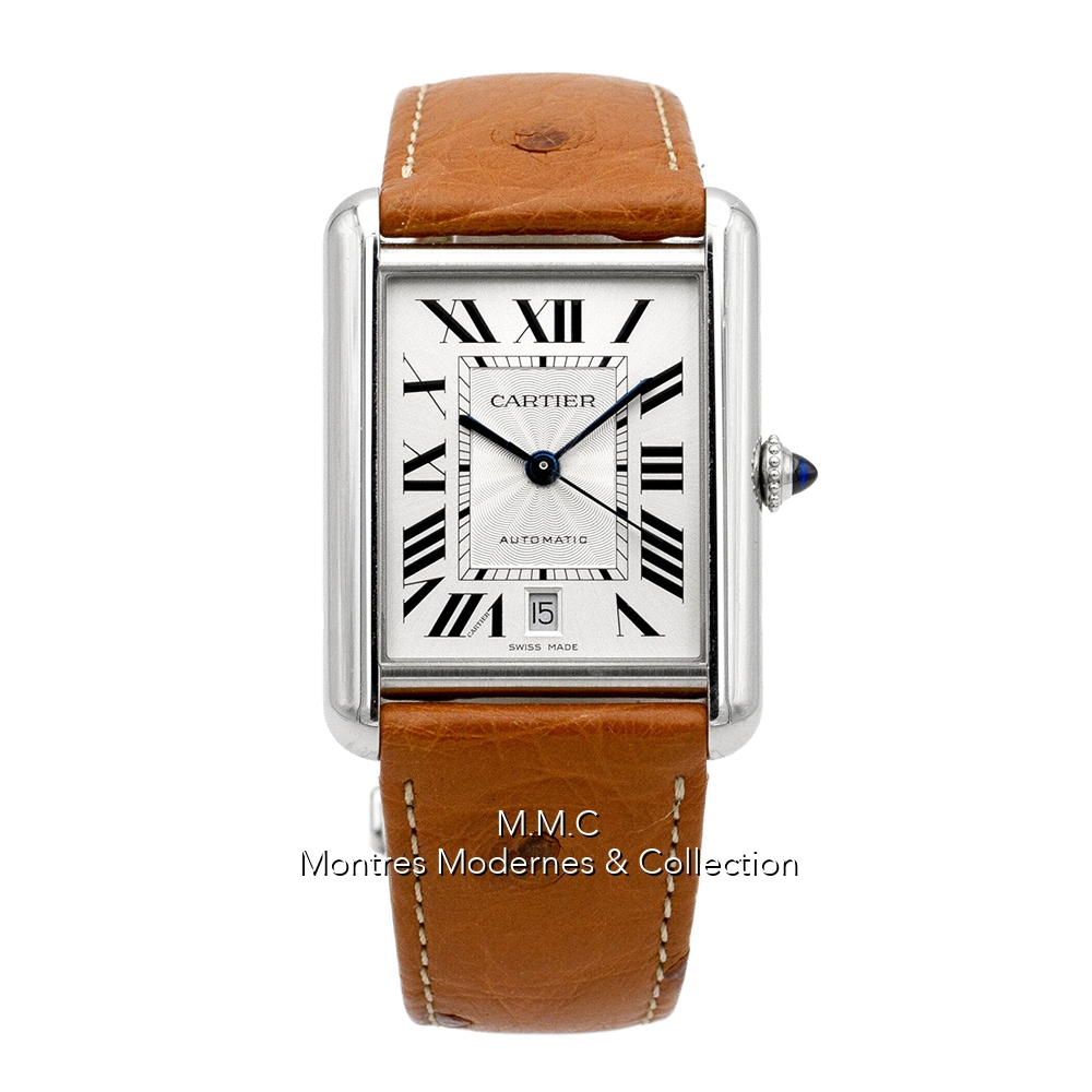 31mm en acier, cadran argenté avec chiffres romains, verre saphir, fond vissé, étanche à 30m