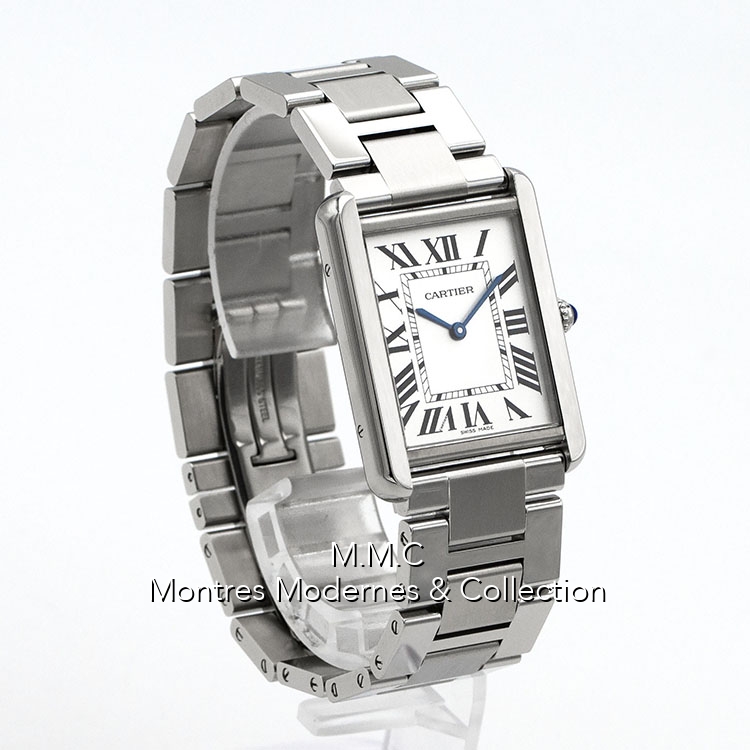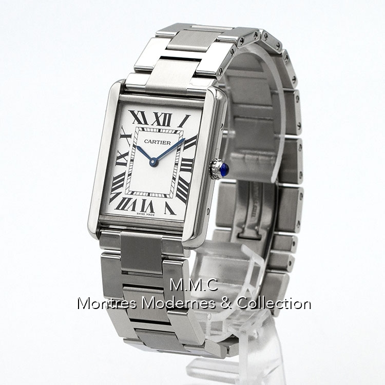 27mm en acier, cadran argenté avec chiffres romains, verre saphir, fond vissé, étanche à 30m