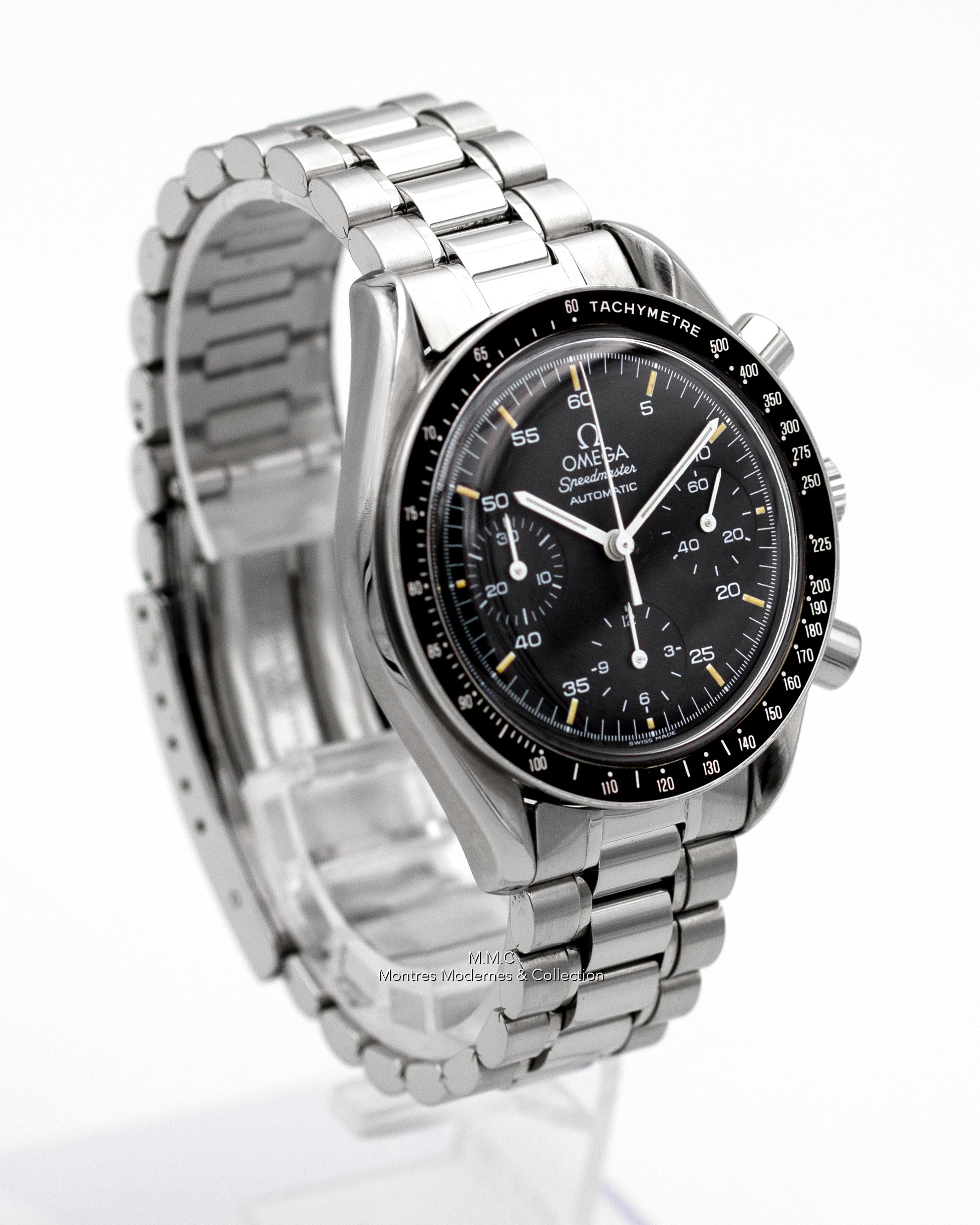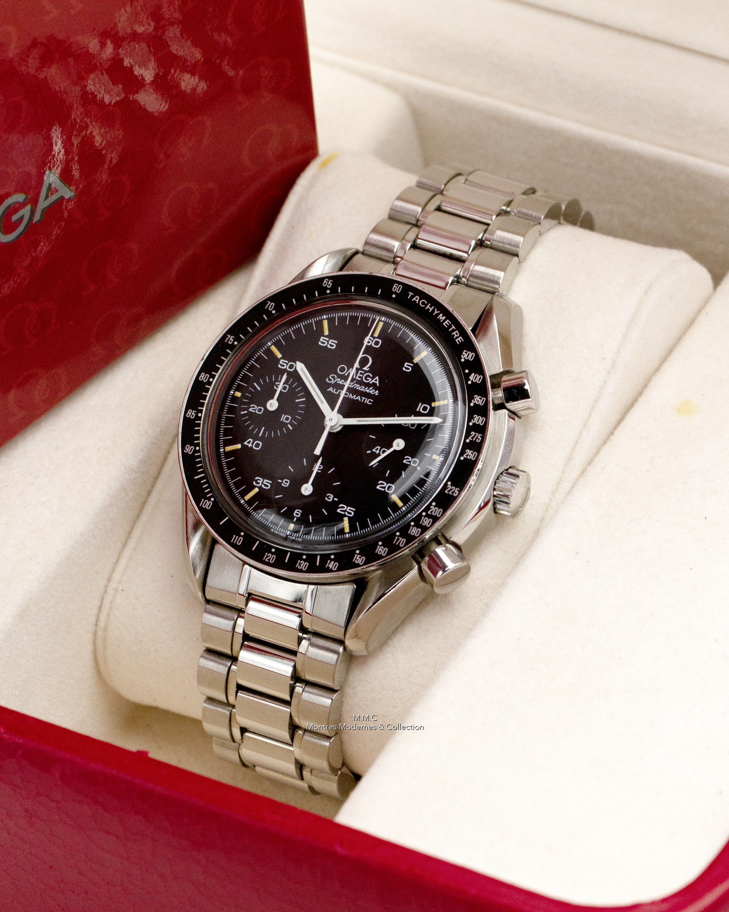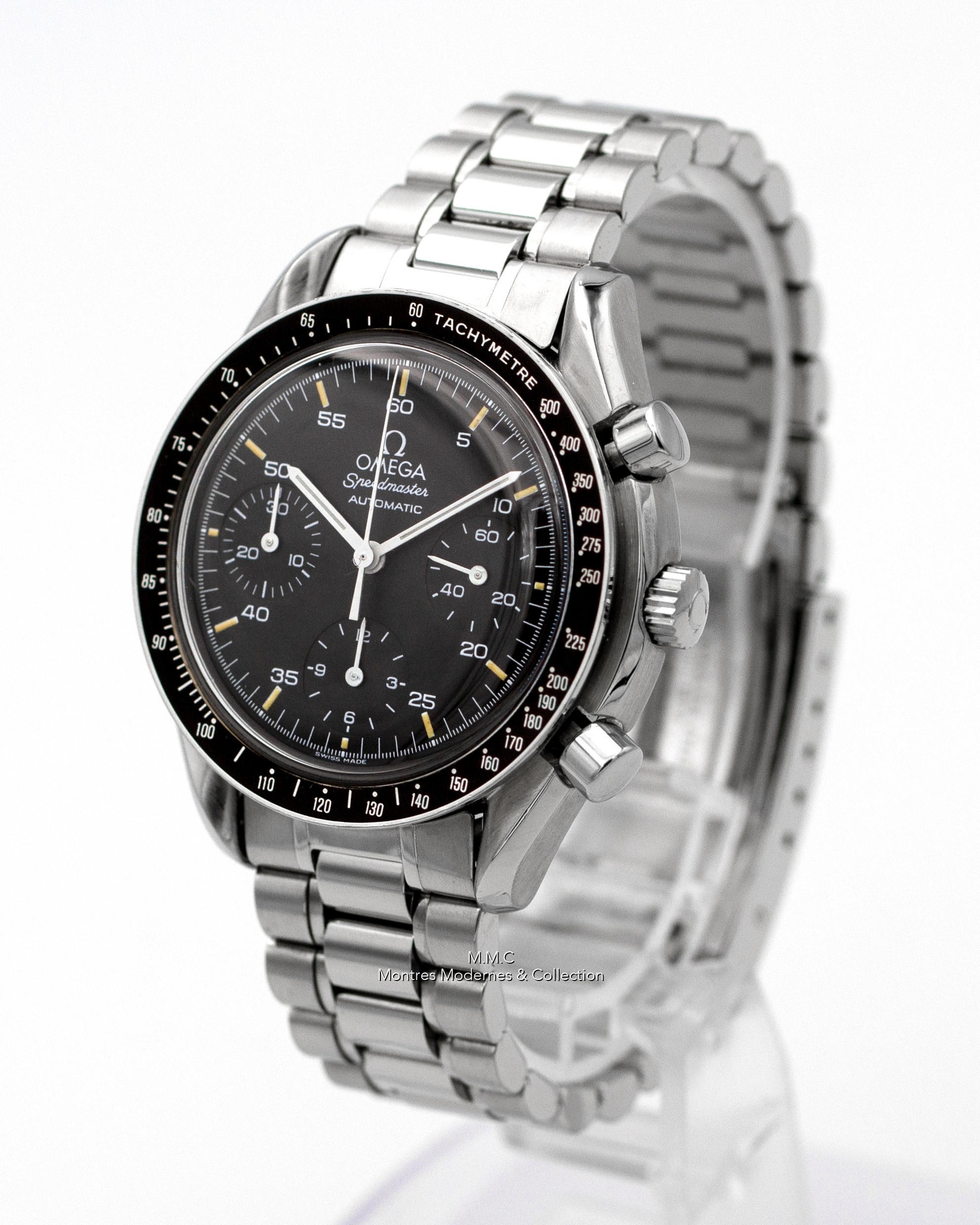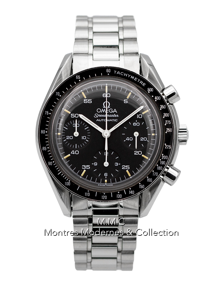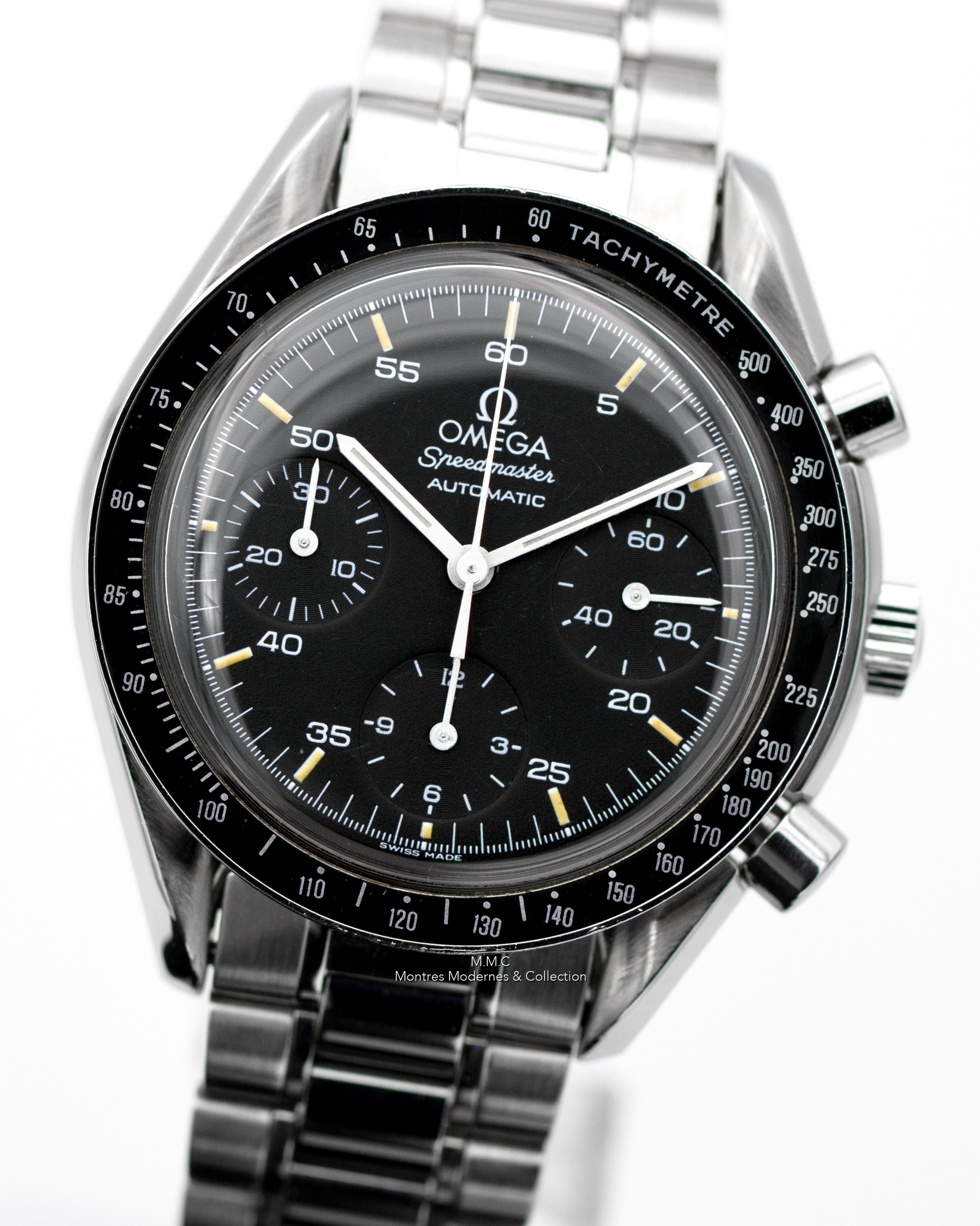39mm en acier, lunette fixe en acier, cadran noir avec index bâtons luminescents, verre plexiglas, fond vissé, étanche à 30m