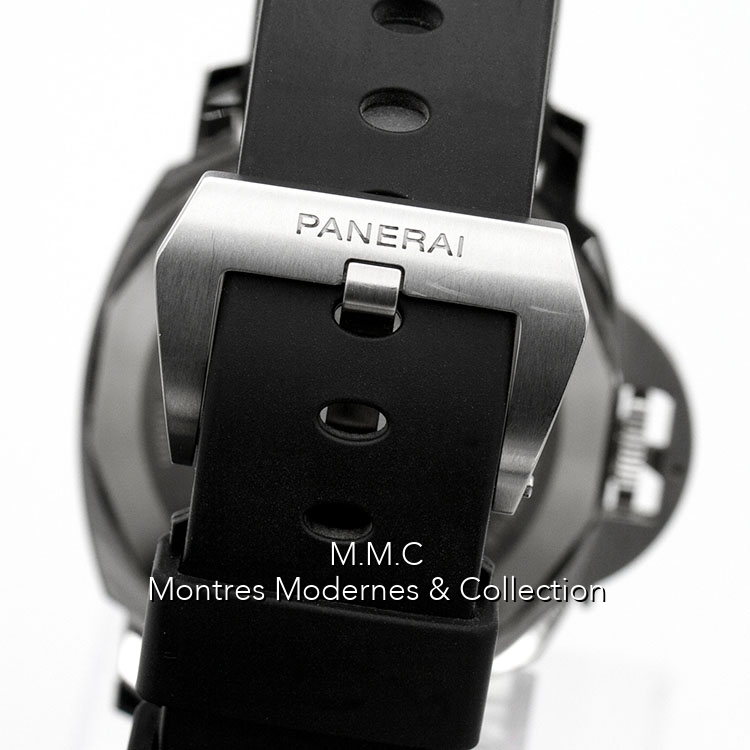 44mm en acier, cadran noir, index et aiguilles luminescents, verre saphir, fond vissé, étanche à 100m