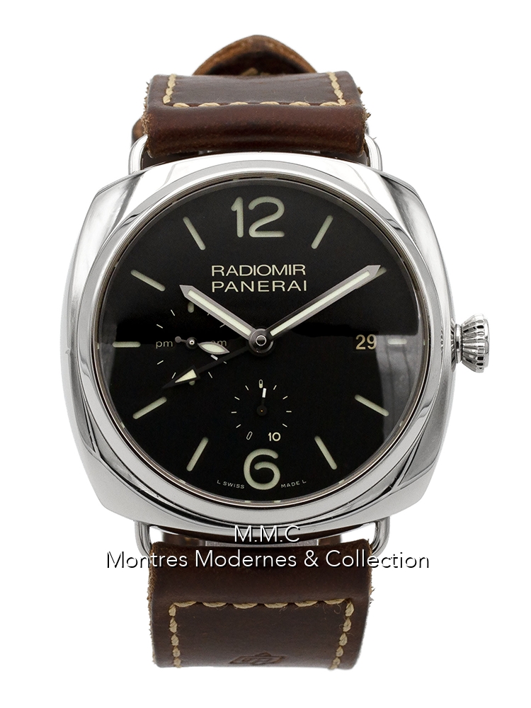 47mm in steel, black dial, luminescent index and hands, sapphire glass, screwed backcase transparent, screwed crown, water resistant to 100m