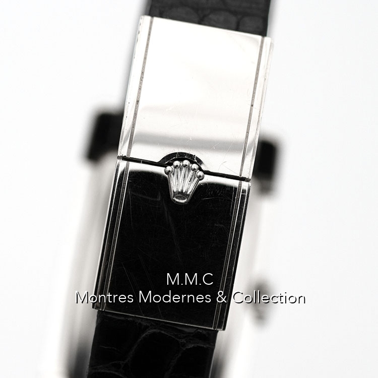 47x28mm en or gris, verre saphir, fond clipé transparent