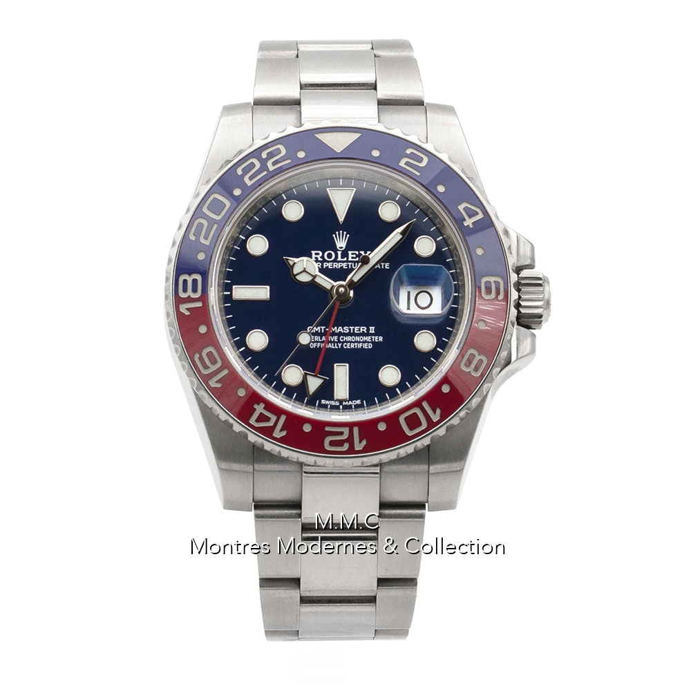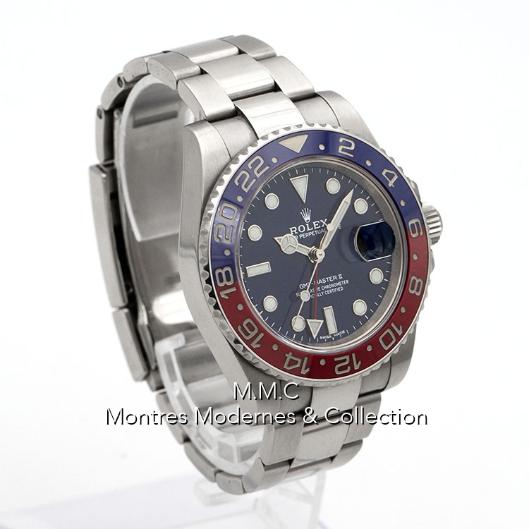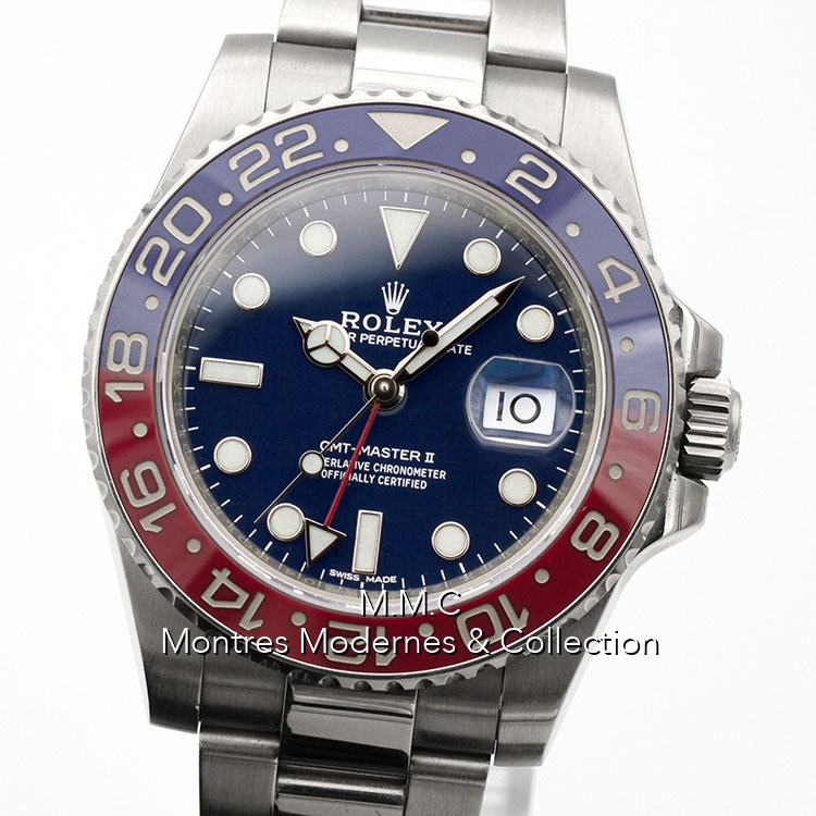 40mm en or gris, lunette tournante bidirectionnelle en céramique, cadran bleu, index et aiguilles luminescents, verre saphir, fond vissé, couronne vissée, étanche à 100m