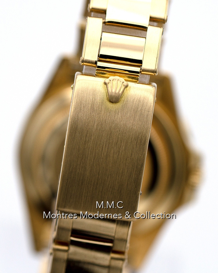 40mm in yellow gold, bezel bidirectional rotating, black dial, luminescent index and hands, sapphire glass, screwed backcase, screwed crown, water resistant to 100m