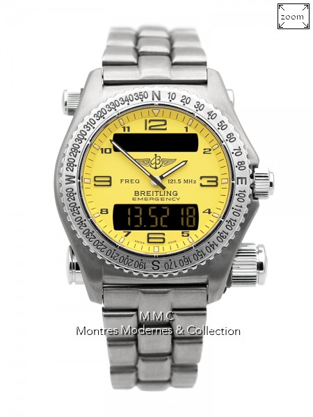43mm en titane, lunette tournante unidirectionnelle, cadran jaune avec chiffres arabes, verre saphir, fond vissé, couronne vissée, étanche à 30m |
