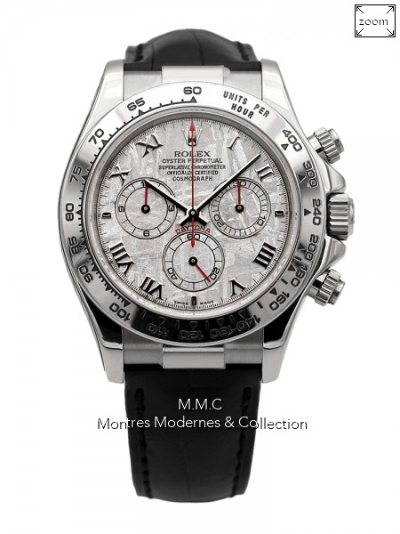40mm en or gris, cadran météorite avec chiffres romains, verre saphir, fond vissé, couronne vissée, étanche à 100m |
