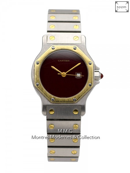 30mm en acier, lunette en or jaune, cadran rouge, verre saphir, fond vissé |