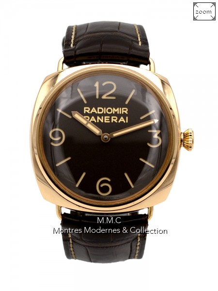 47mm en or rose, cadran noir, index et aiguilles luminescents, verre plexiglas, fond vissé transparent, couronne vissée, étanche à 100m |