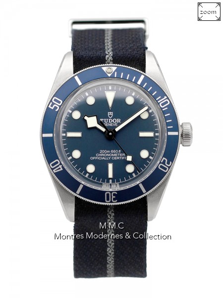 39mm en acier, lunette tournante unidirectionnelle en acier, cadran bleu avec index bâtons luminescents, verre saphir, fond vissé, couronne vissée, étanche à 200m |