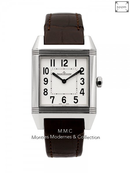 31mm en acier, boîtier mobile et réversible à 180°, cadran blanc avec chiffres arabes, verre saphir, étanche à 50m |