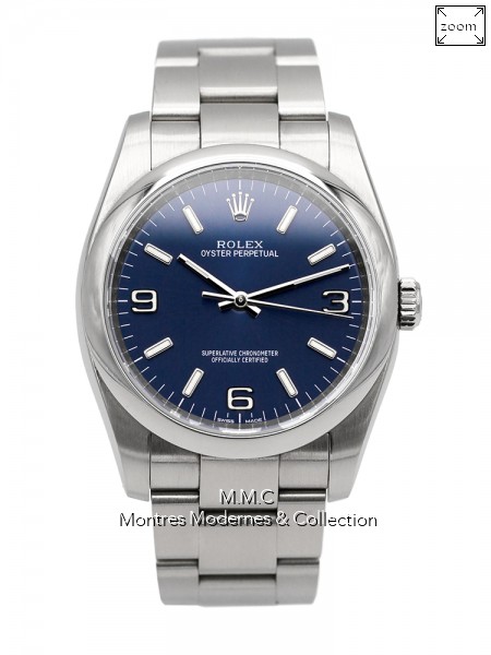 36mm in steel, blue dial, luminescent index and hands, sapphire glass, screwed backcase, screwed crown, water resistant to 100m |