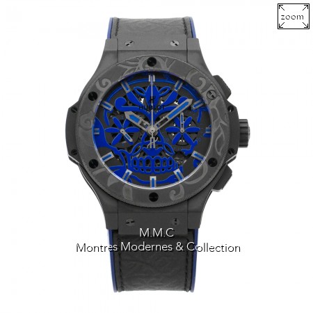 44mm en céramique, verre saphir, fond vissé transparent, étanche à 100m |