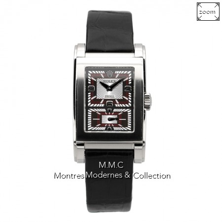 47x28mm en or gris, verre saphir, fond clipé transparent |
