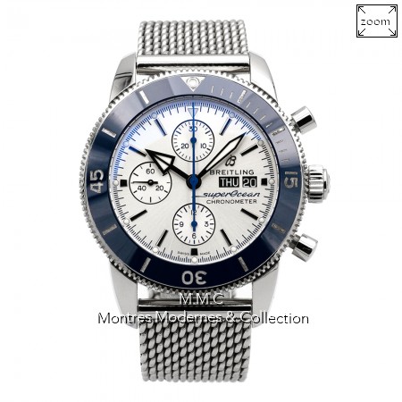 44mm en acier, lunette tournante unidirectionnelle, cadran argenté, verre saphir, fond vissé, couronne vissée, étanche à 200m |
